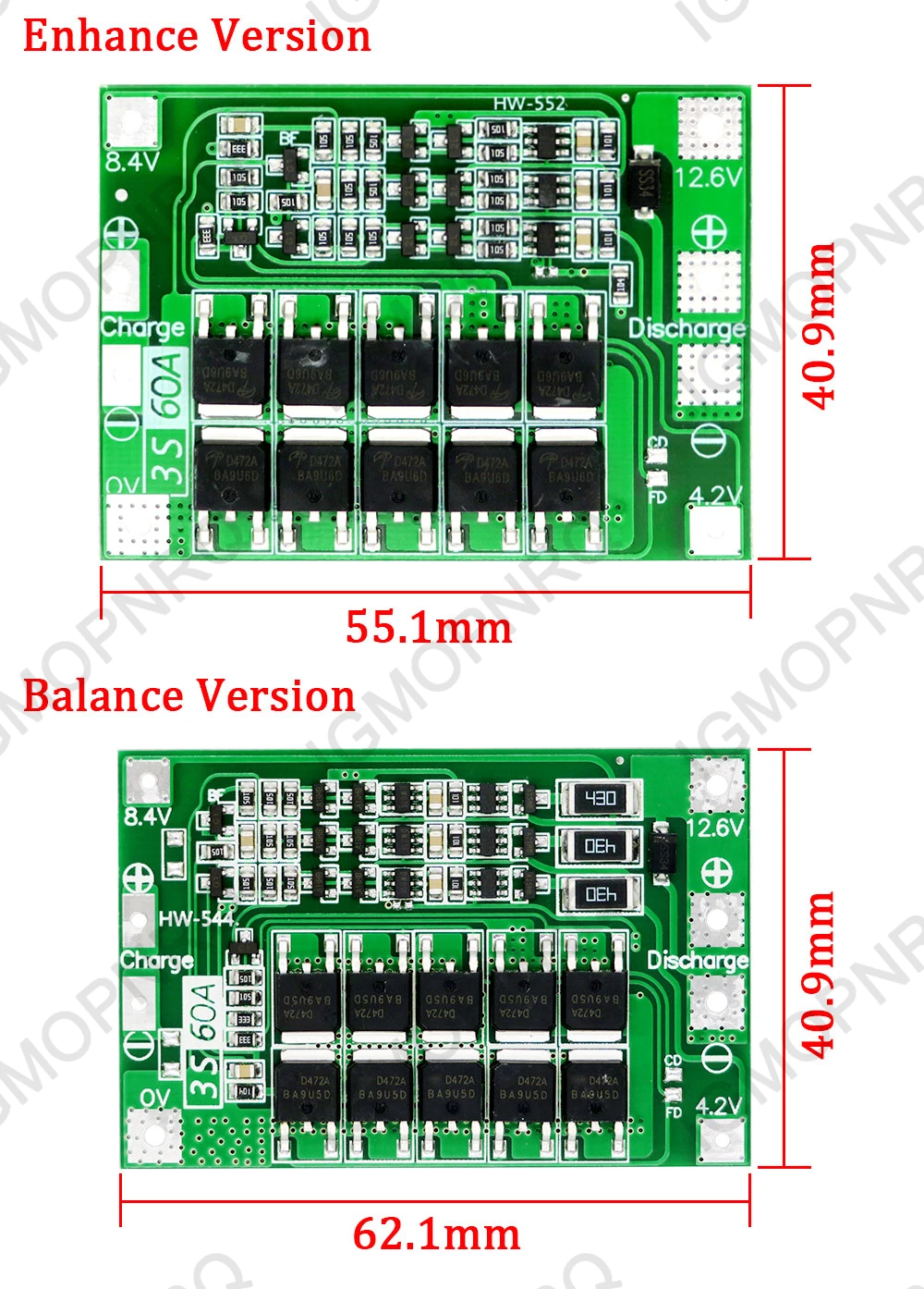 Защитная плата 3S4S 40A60A 18650 BMS, для зарядки литий-ионных батарей, для двигателя перфоратора, 11,1 В12,6 В14,8 В16,8 В с увеличителембалансиром