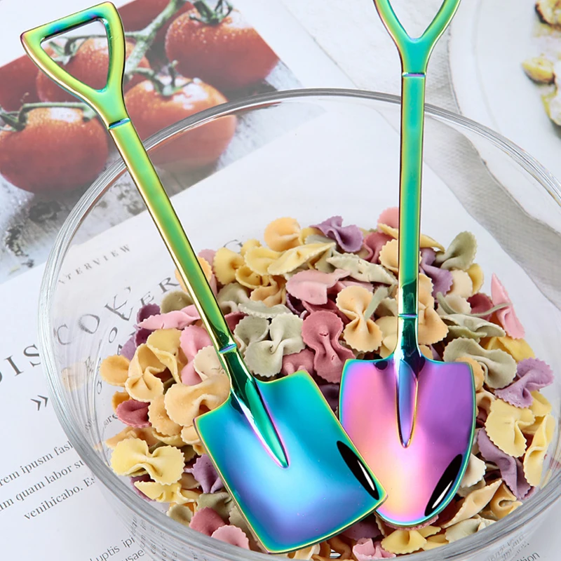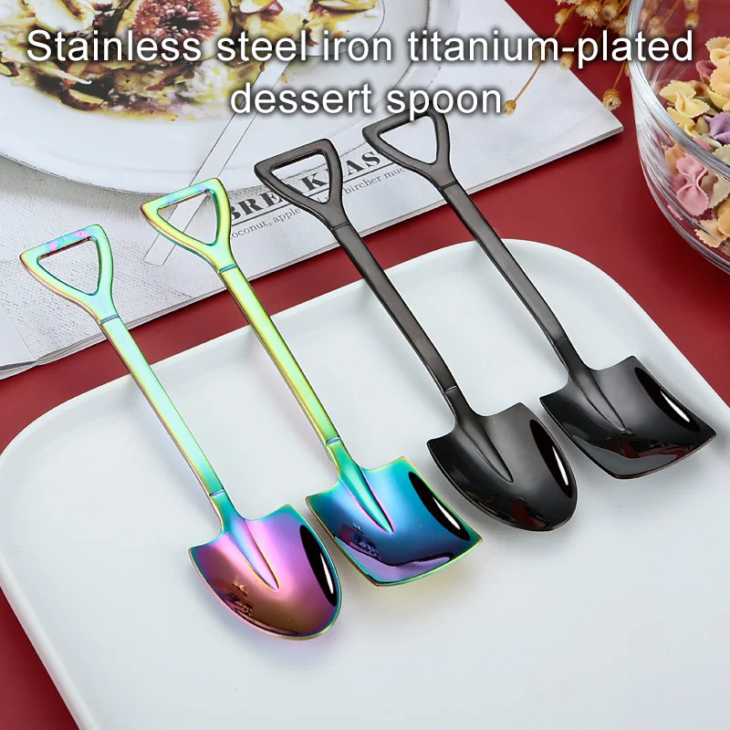 Особенности:<Материал: изготовлен из высококачественной антикоррозийной нержавеющей стали, нетоксичный, устойчивый к ржавчине и коррозии, безопасный для посудомоечной машины<Хорошее качество: гладкие и круглые края, чтобы вы чувствовали себя комфортно.<Креативный дизайн: креативная ложка в форме лопаты предназначена для мороженого и арбуза.<Не царапается: гладкие края не вызывают травм губ и десен.<Идеальный подарок: идеально подходит для того, чтобы вы добавили в свой набор столовых приборов, или в качестве подарка, и детям, друзьям и семье понравится<Многоразовое Использование: отлично подходит для мороженого, йогурта, десертов, тортов, фруктов, желе, пудинга и любого другого вкусного десерта. Он также работает для перемешивания таких вещей, как кофе, чай, шоколадное молоко и многое другое.<Многоцелевой: идеально подходит для использования в качестве чайной ложки, десертной ложки, ложки для мороженого, фруктовой ложки, десертной ложки, ложка для торта, кофейной ложки, перемешивающей ложки и многого другого.<Широкое применение: Идеально подходит для кухни, дома, бара, ресторана, вечерние и многое другое.<Хороший декор: современный дизайн, легко сочетается с существующими столовыми приборами, это стильно и практично.<Эргономичная ручка: термостойкая, эргономичная ручка из нержавеющей стали для безопасного и удобного захвата