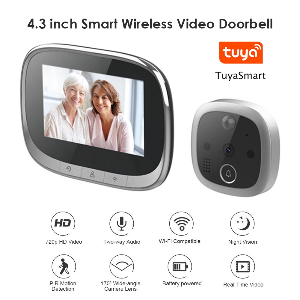 Умный беспроводной домофон W2 Tuya, 4,3 дюйма, видеодомофон, дверной звонок, камера ночного видения, датчик движения PIR