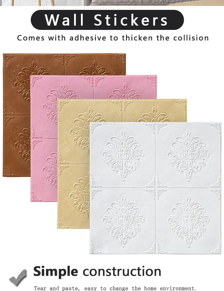12PCS 3D Wall Panel Home Decoration Self-Adhesive Panels 3D Wallpap...