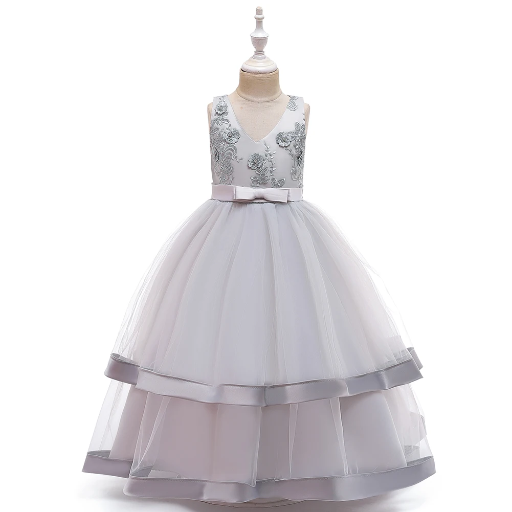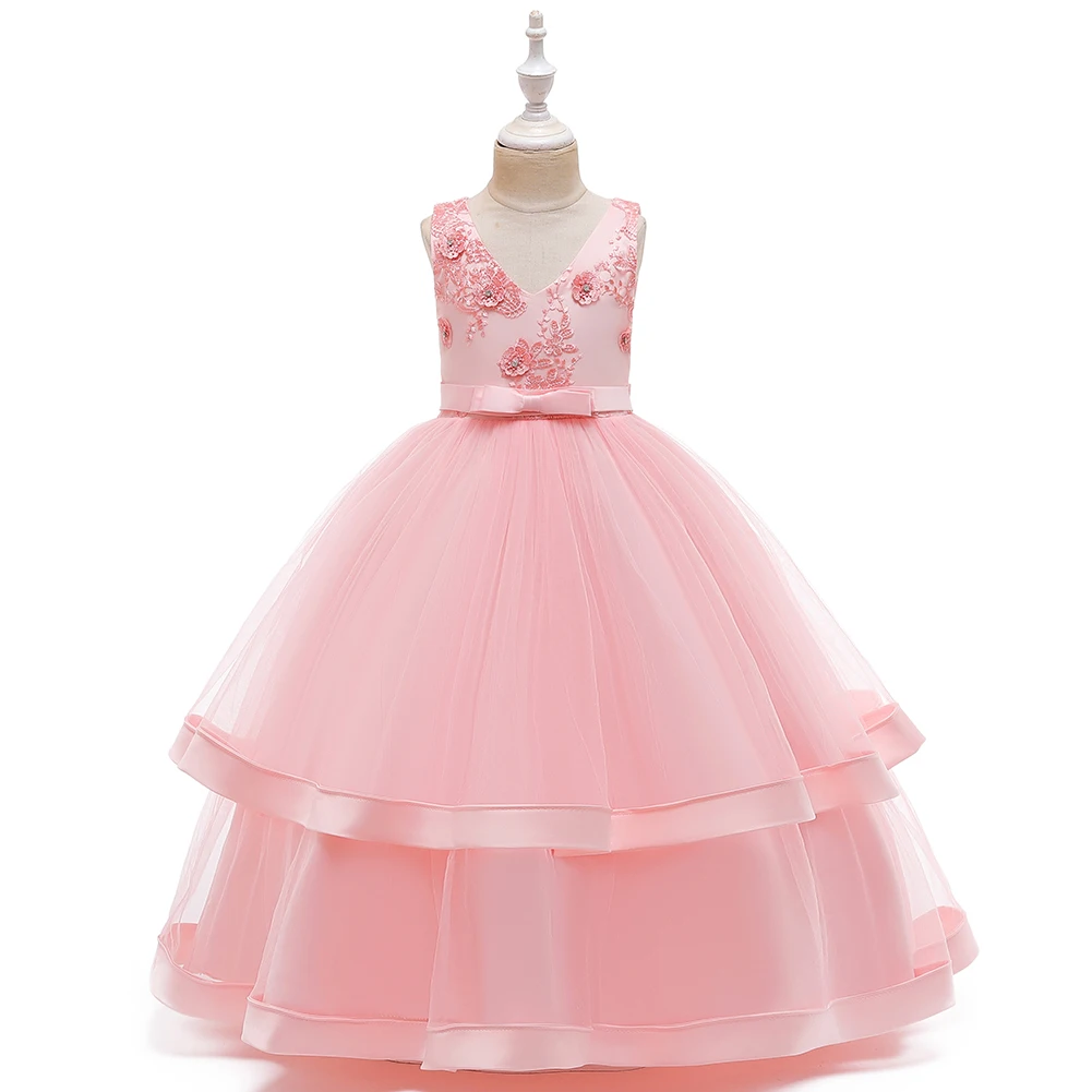 Платье для девочек 10 лет, детское модное банкетное платье высокого качества, многослойное характерное платье без рукавов с цветами для девочек
