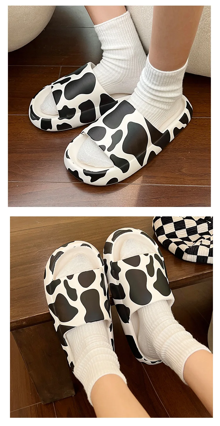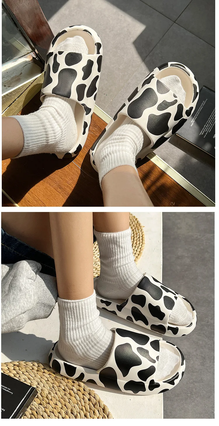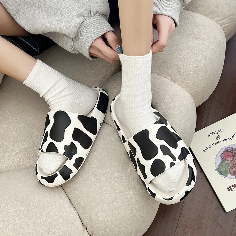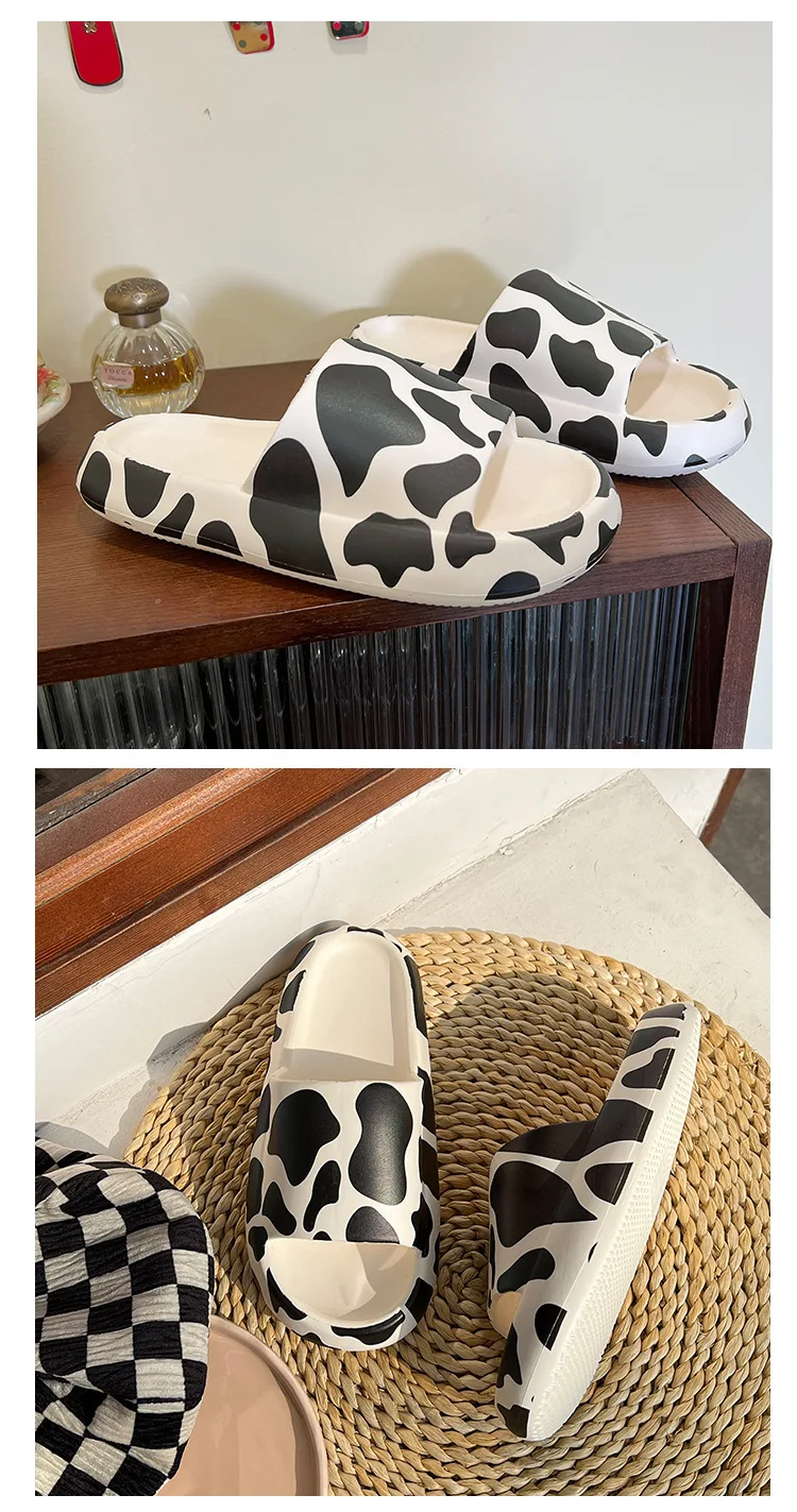 Шлепанцы женские из ЭВА, Симпатичные сандалии на толстой платформе, с рисунком коровы, домашние тапочки, мягкая обувь для пар, лето 2022