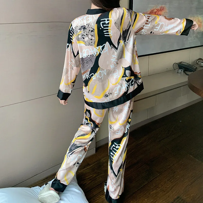 Пижама женская с V-образным вырезом, роскошная дизайнерская одежда для сна с надписью, шелковая Домашняя одежда, ночное белье большого размера