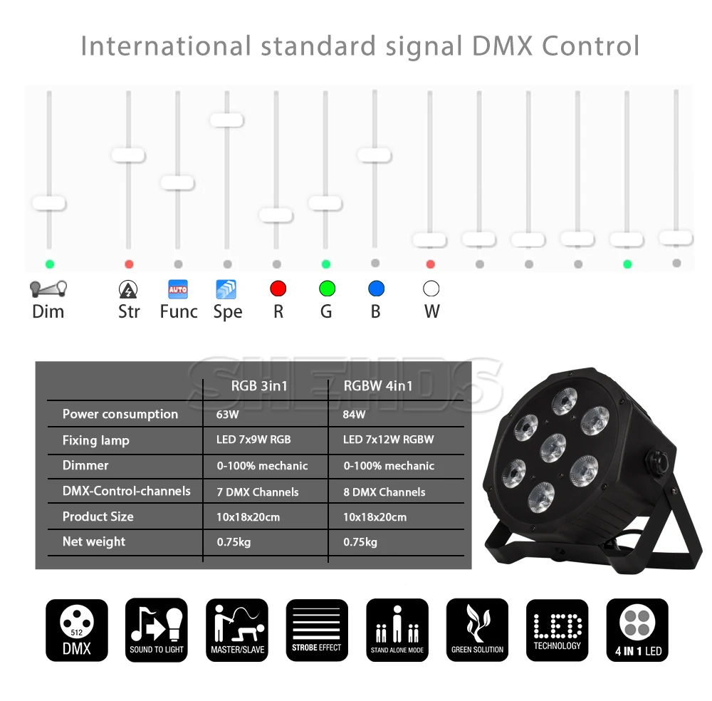 Лидер продаж, плоский светодиодный светильник SHEHDS 7x18 Вт7x12 Вт RGBWA + UVRGBW для семейной вечеринки, дня рождения, театра, свадьбы, сценического освещения
