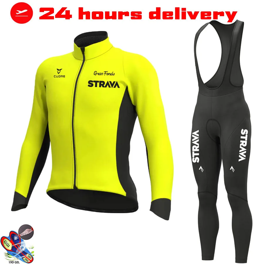 Зимний теплый флисовый трикотажный комплект для велоспорта STRAVA, ...