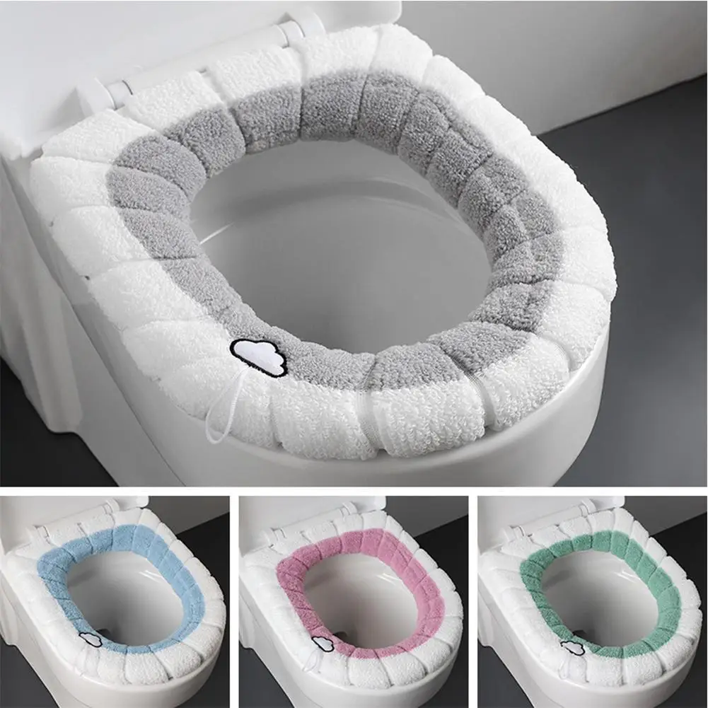 Универсальный чехол на сиденье унитаза для ванной комнаты с ручкой, теплый мягкий чехол для унитаза, плюшевая подушка для унитаза