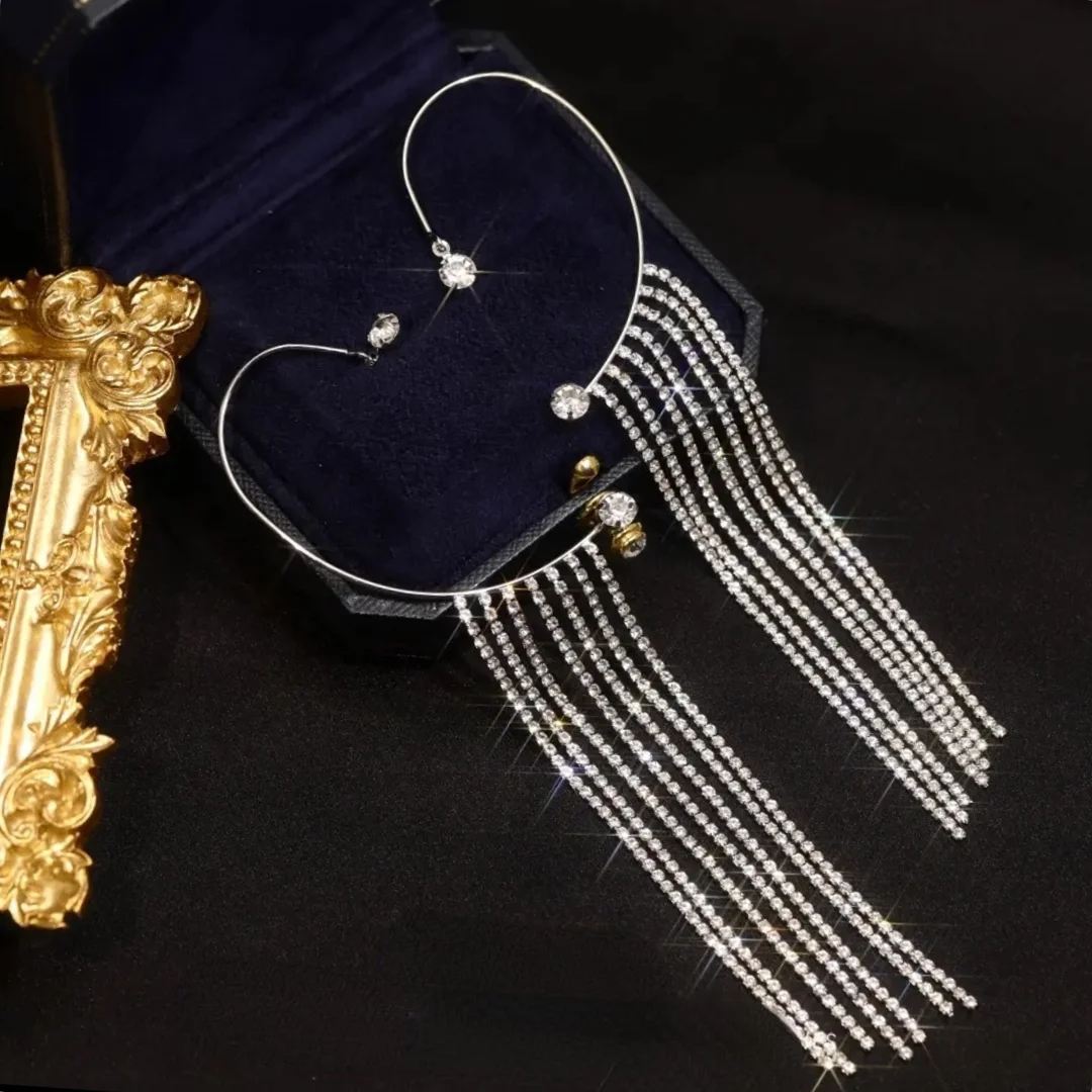XIALUOKE длинные кисточки кристаллы Уши висячие клипсы для ушей для...