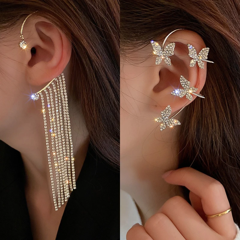 Блестящие циркониевые манжеты для ушей в виде бабочки, зажим для уш...
