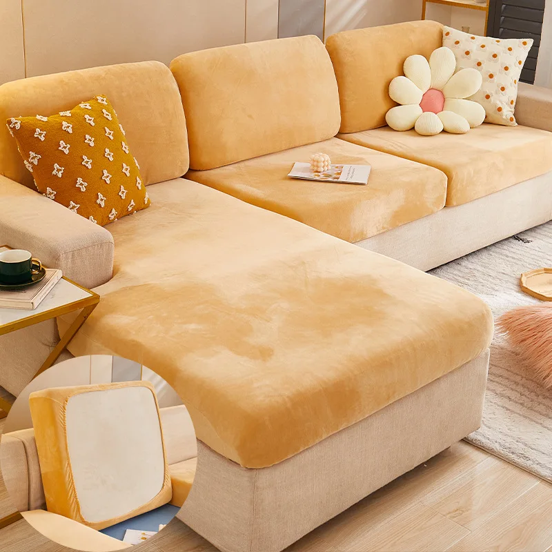 Эластичные золотые бархатные однотонные чехлы для диванов, Нескользящие Угловые чехлы для диванов Breif для гостиной на четыре сезона