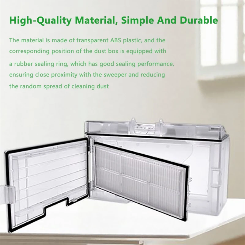 Материал изготовлен из прозрачного АБС-пластика, а соответствующее положение пылесборника оснащено резиновым уплотнительным кольцом, которое обладает хорошей производительностью уплотнения, обеспечение близкого расстояния с уборочной машиной и уменьшение случайного распространения чистящей пыли