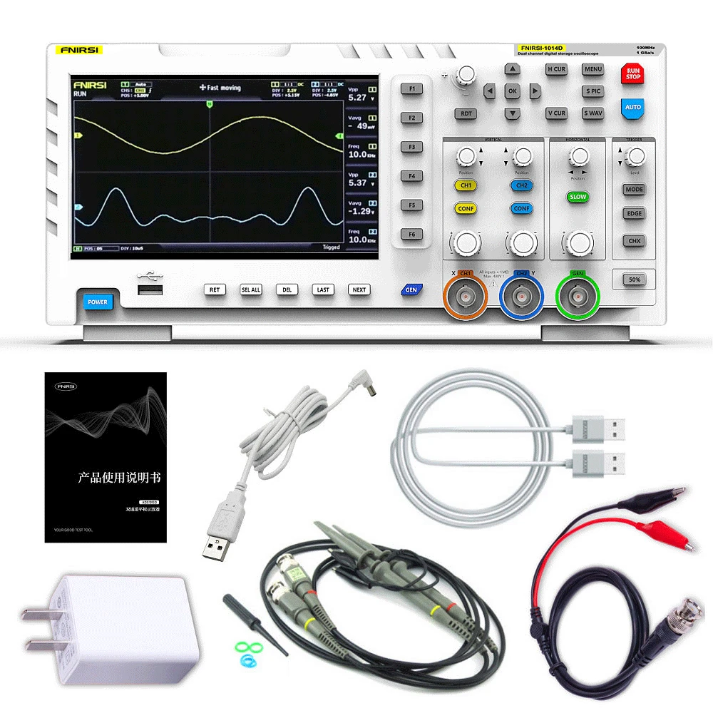 Fnirsi 1014D Настольный осциллограф цифровой USB ПК 2-канальный осциллограф мультиметр генератор сигналов частота дискретизации 1 Гвыбс 100 МГц