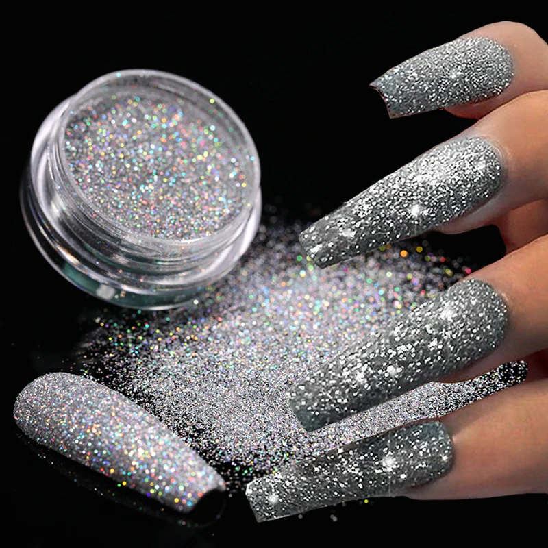 Радужный Блестящий Порошок для ногтей, серебряные блестки, блестки ...