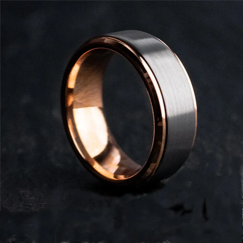Роскошные ювелирные аксессуары мужские 8 мм вольфрамовое кольцо розовое золото черный матовый нержавеющая сталь обручальные кольца для мужчин удобная посадка