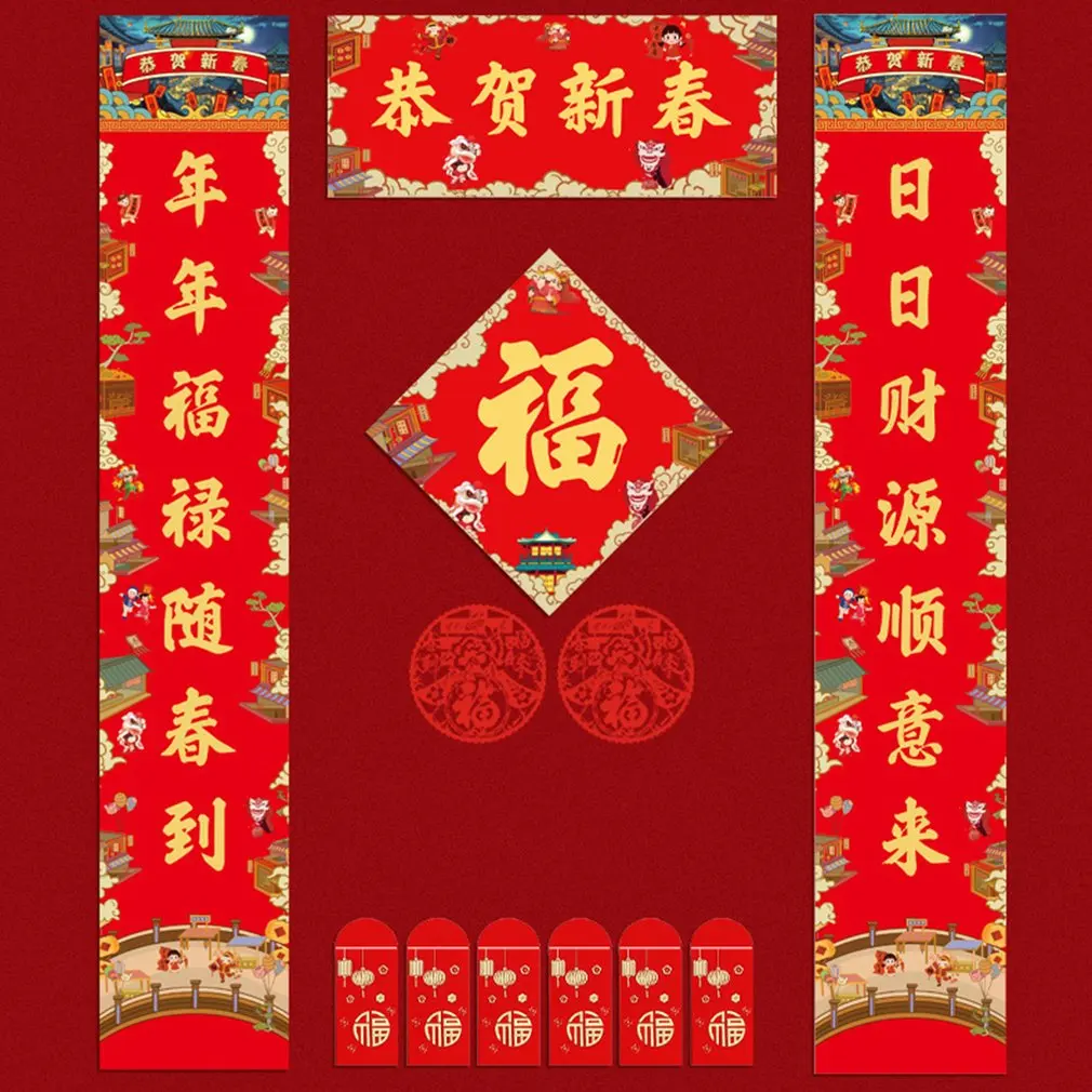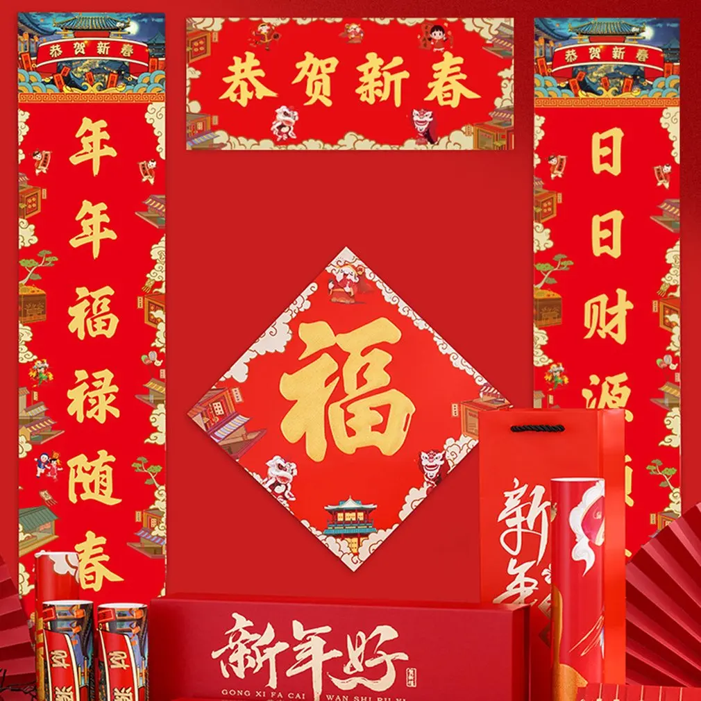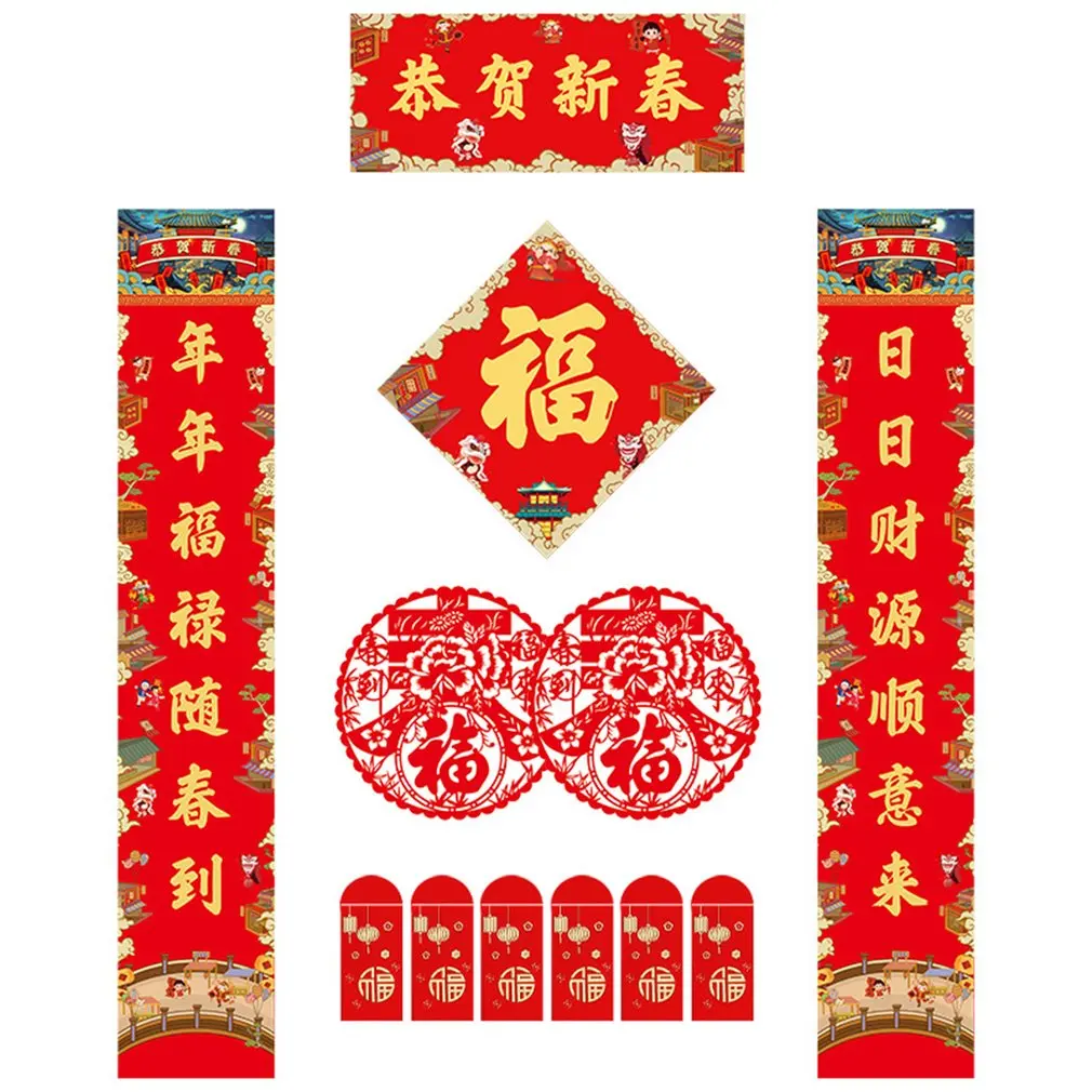 2022 китайский новогодний парный Набор для украшения, бумажная фотобумага с рисунком, праздник весны, домашний декор