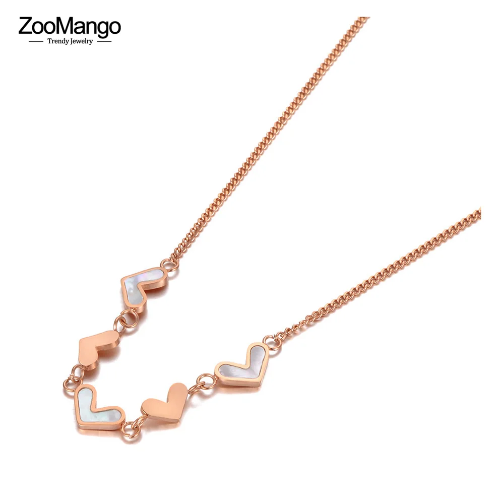 ZooMango ожерелья из титановой нержавеющей стали 5 шт. сердце очаровательные ожерелья ювелирные изделия Модные богемные ракушки ожерелье для женщин ZN20258