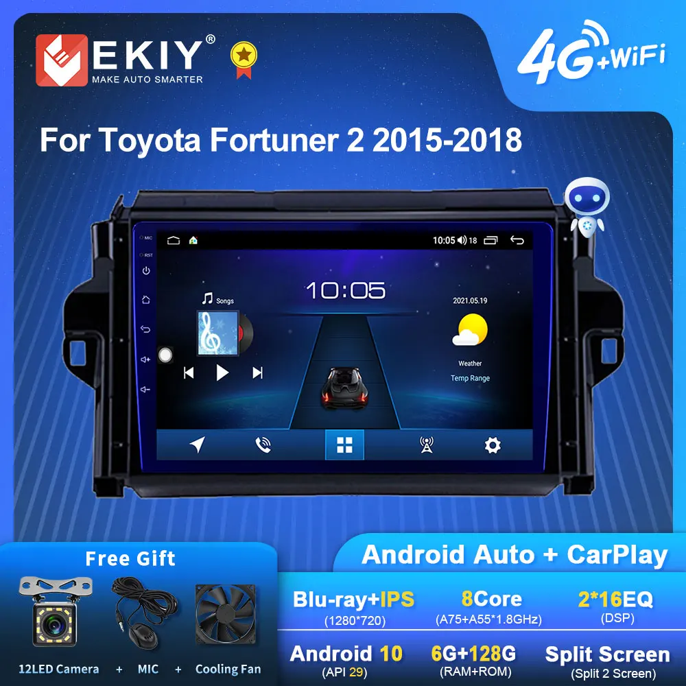 EKIY S7T Android 10 автомобильное радио для Toyota Fortuner 2 2015-2018 мультимедийный плейер магнитофон GPS навигация головное устройство Carplay DVD HU