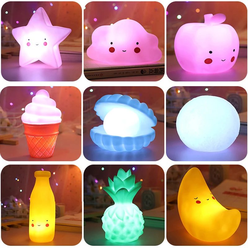 Детский ночник со светодиодной подсветкой, мультяшная лампа в виде звезд, белых облаков, мороженого, ламсветильник для настроения, детский подарок, светящаяся игрушка, декор для спальни, ночные лампы