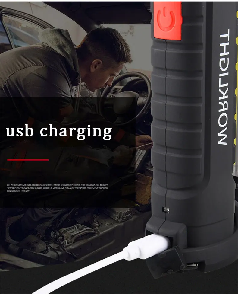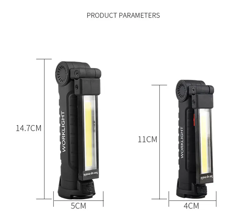 * Магнитное основание и поворотный крючок: крепкий магнит надежно крепится к автомобилю или любой металлической поверхности, а поворотный крючок спрятан в нижней части рабочего светильник, прост в использовании для аварийного ремонта дорог, работа в ночное время или многоцелевая работа
