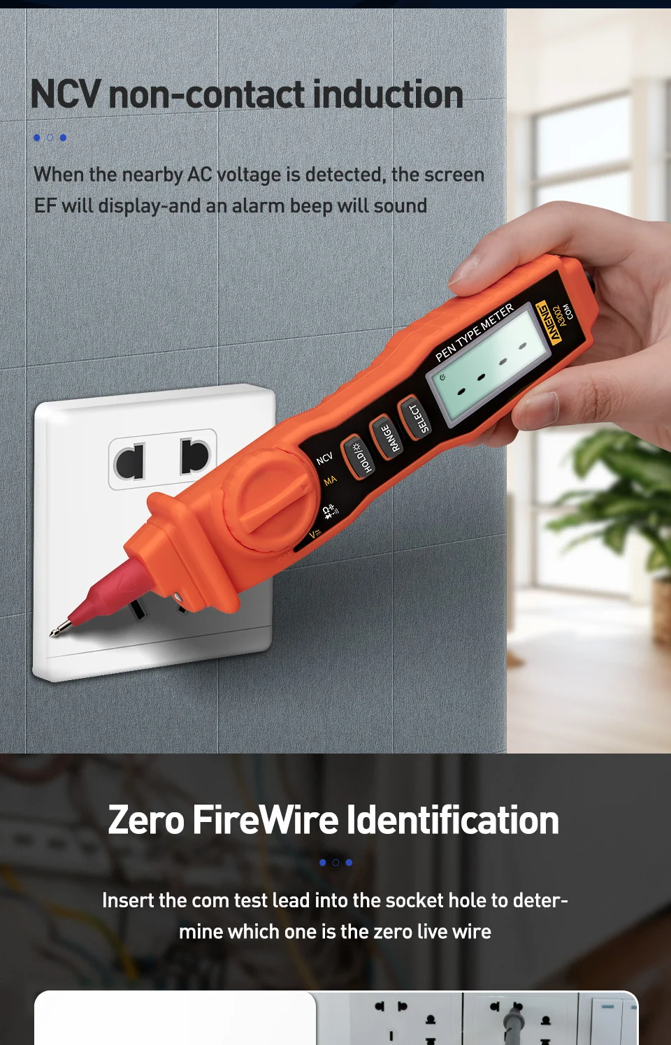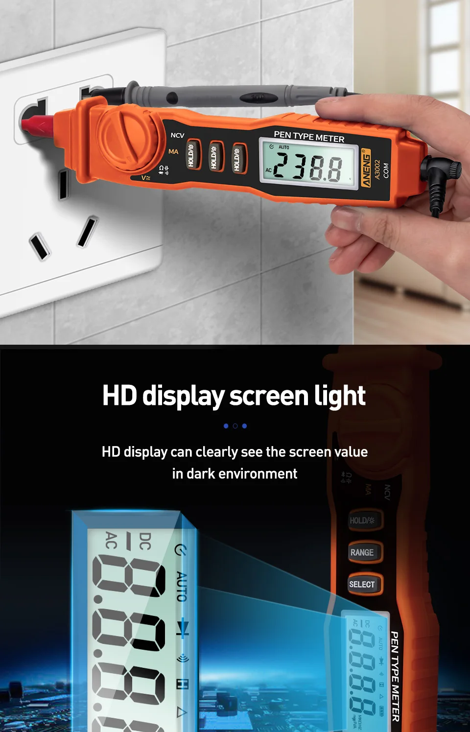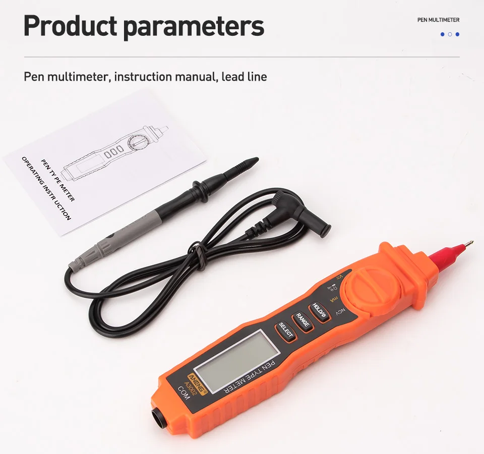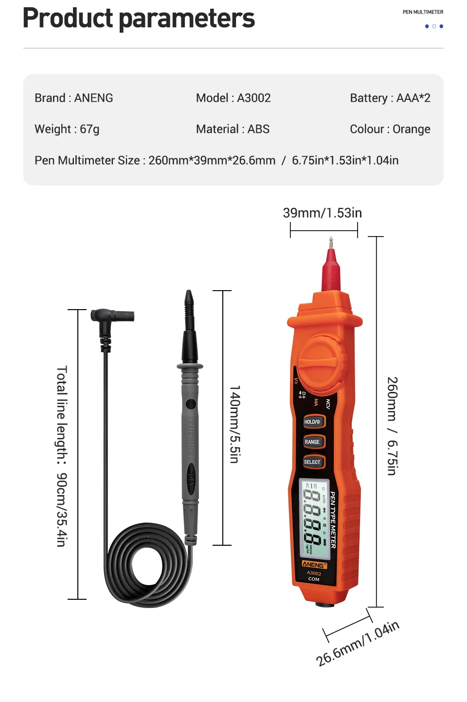 Цифровой мультиметр ANENG A3002 в виде ручки, 4000 отсчетов с бесконтактным тестером напряжения переменногопостоянного тока сопротивления диода непрерывности, инструмент