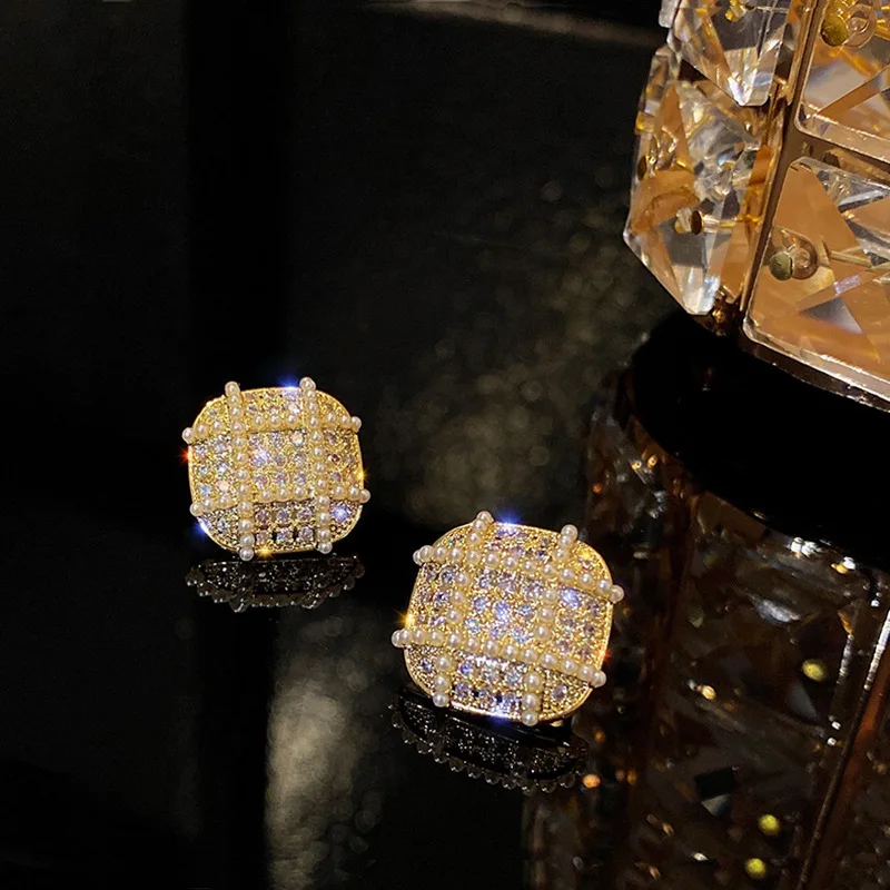 Геометрическая Имитация Жемчуга клетчатые серьги круглые новые трендовые золотые модные простые украшения для дам