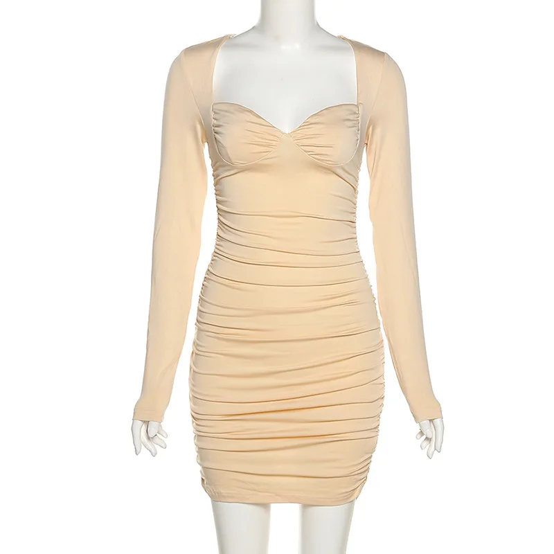 Осеннее однотонное мини-платье для женщин, сексуальное хипстерское облегающее вечернее платье с длинным рукавом, женская одежда для улицы, Новинка