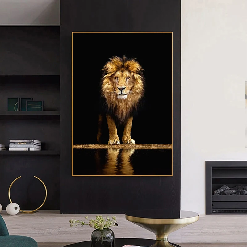 Золотой Лев, рисунок на холсте в африканском стиле постеры с животн...