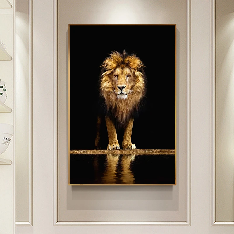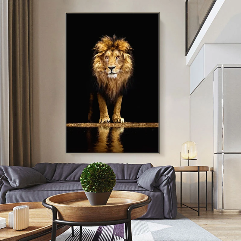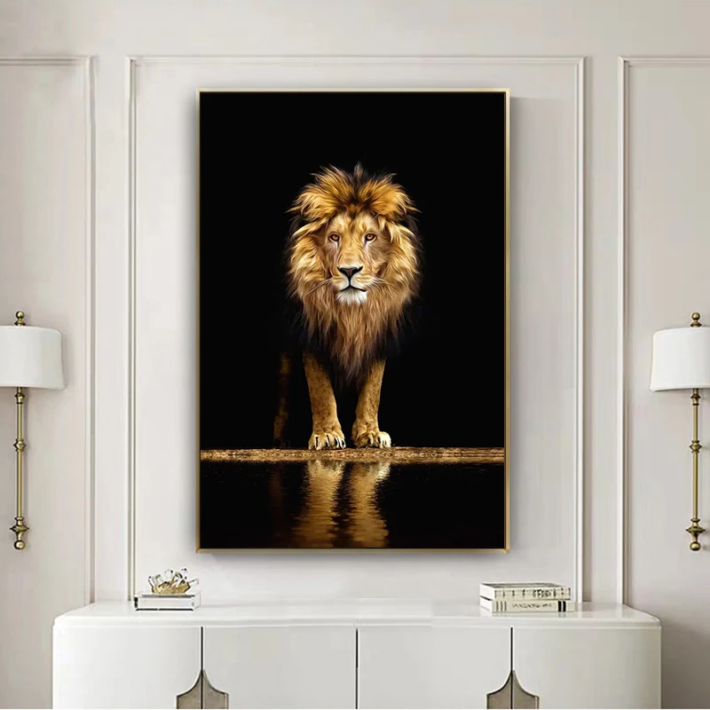 Настенная Картина на холсте с изображением озера и Льва, постеры и принты в скандинавском стиле, абстрактные настенные картины, украшение для гостиной и офиса
