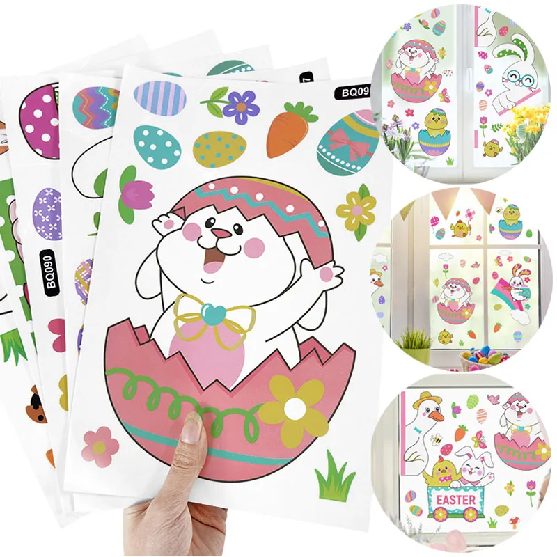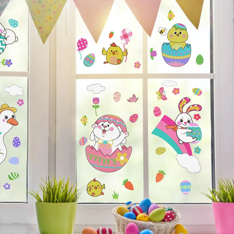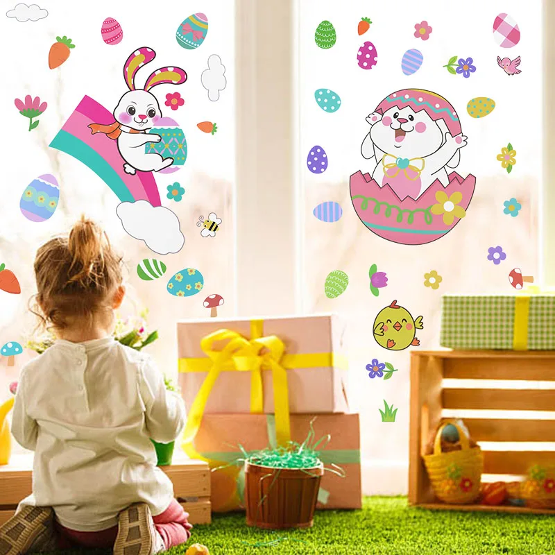 1 шт., наклейка на пасхальное стекло, на окно, с разноцветными яйцами кролика, морковка, настенный стикер, пасхальный декор для дома, для детской комнаты, Настенный декор, подарки
