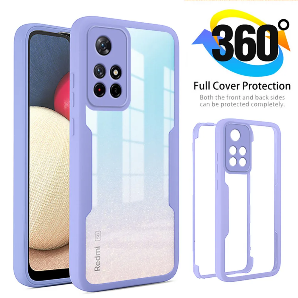 Защитная пленка на передний экран с поворотом на 360 градусов для красного mi Note 11 10 9S 9A 9C K40 Mi 11T Lite Poco X3 M3 Pro, Прозрачная Жесткая задняя крышка