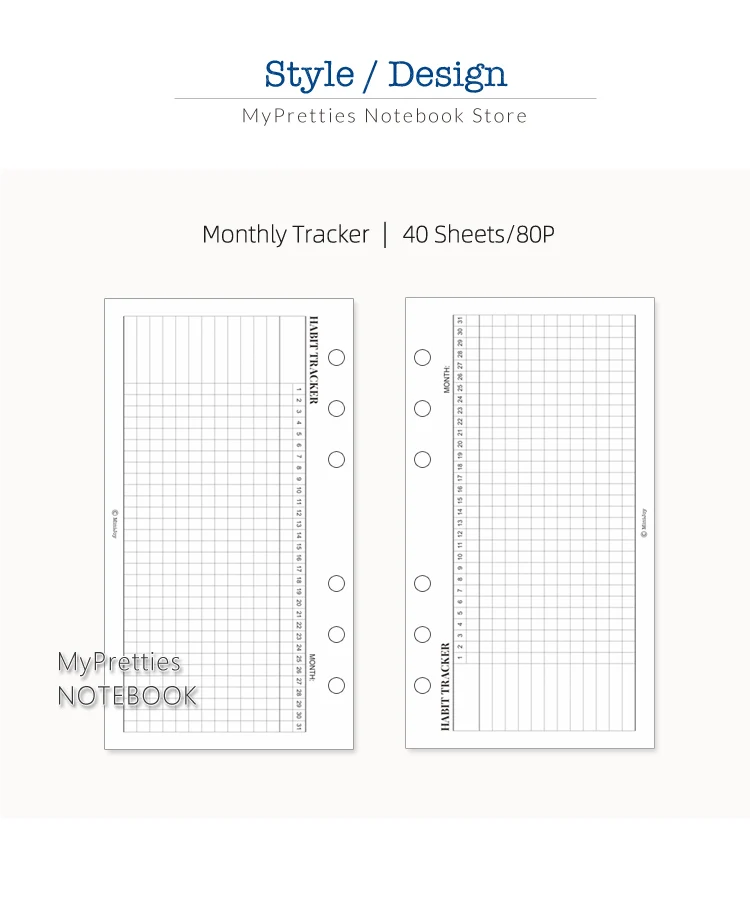 MyPretties 40 листов базовые ежемесячные привычные трекеры Заполняемые бумаги A6 заполняющие бумаги для личных 6 отверстий Папка-органайзер бумаги