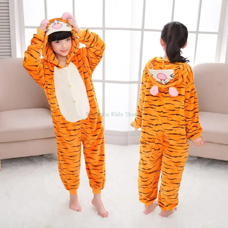 Детские комбинезоны Кигуруми для детей Пижама для маленьких мальчиков и девочек Домашняя одежда Пижама Аниме Косплей Костюм зимний фланелевый комбинезон с капюшоном