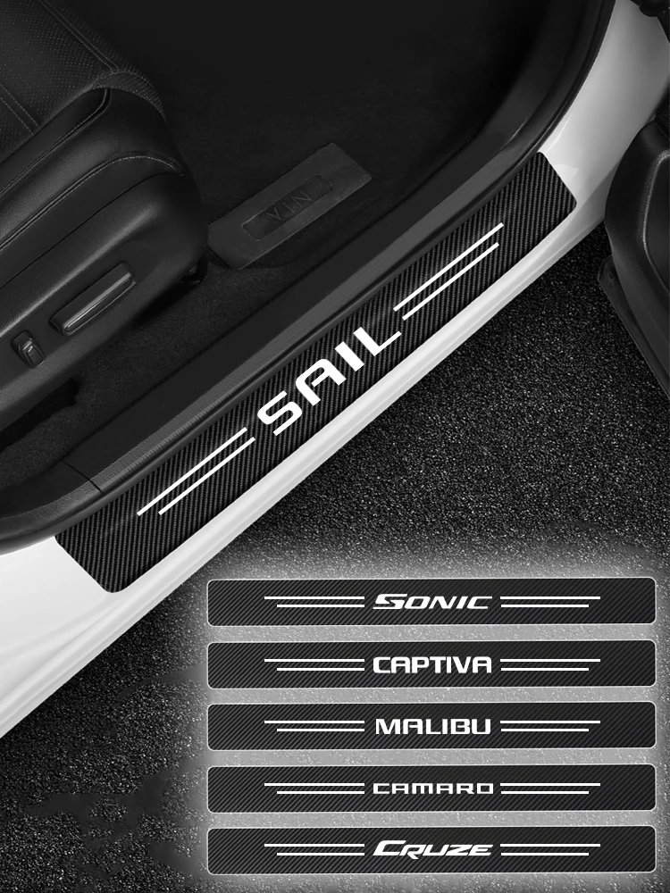 4 шт. Накладка на порог автомобиля для Chevrolet Cruze SAIL Lacetti Captiva Camaro Светоотражающая наклейка из углеродного волокна автомобильные аксессуары