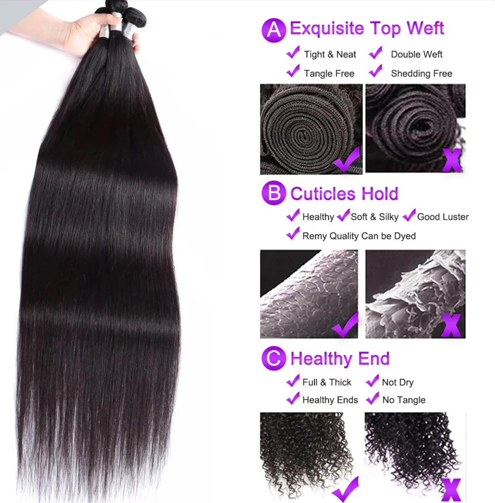 Прямые пучки с фронтальной 100% пряди человеческих волос, бразильск...