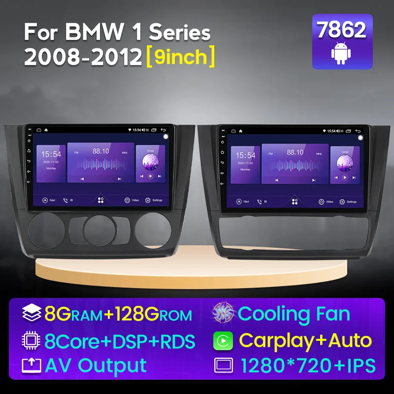 Автомобильный мультимедийный плеер NaviFly, 9 ''Android 11 8 + 128G для BMW 1 серии E88 E82 E81 E87 2008 2009 2010 2011 Carplay Stereo BT