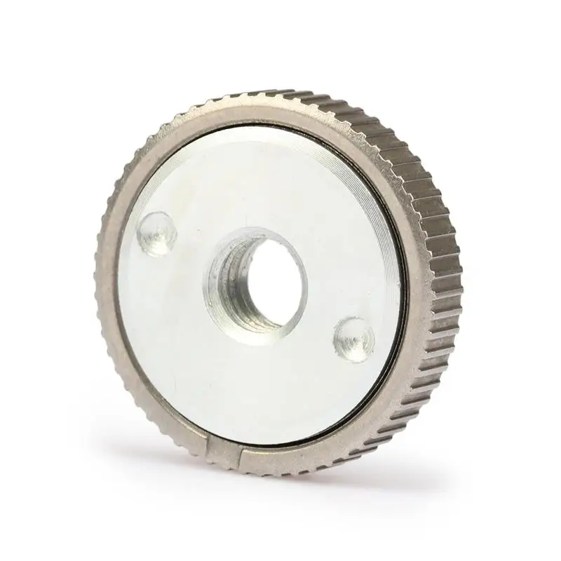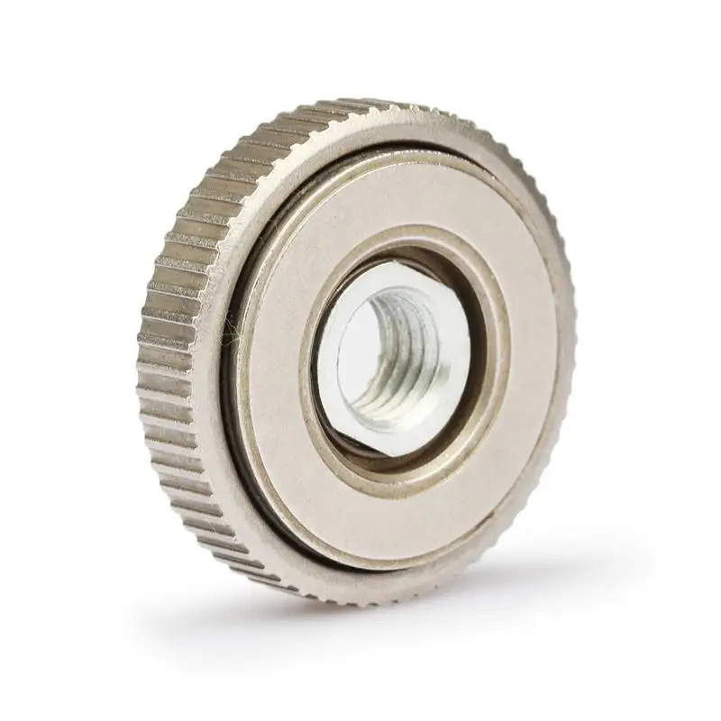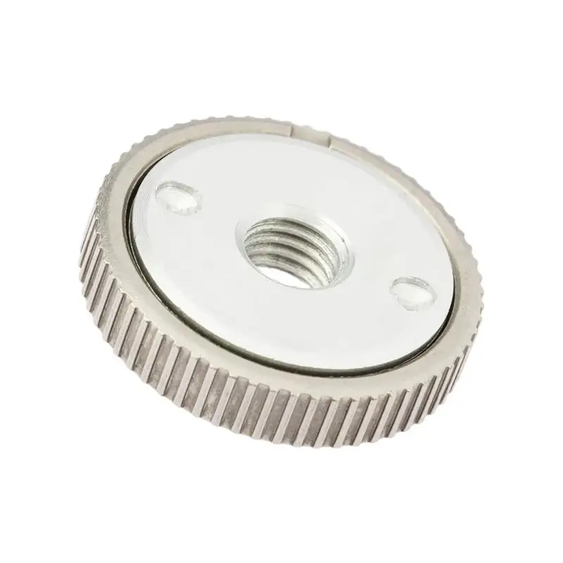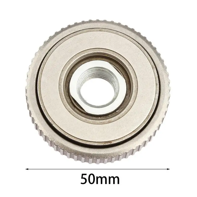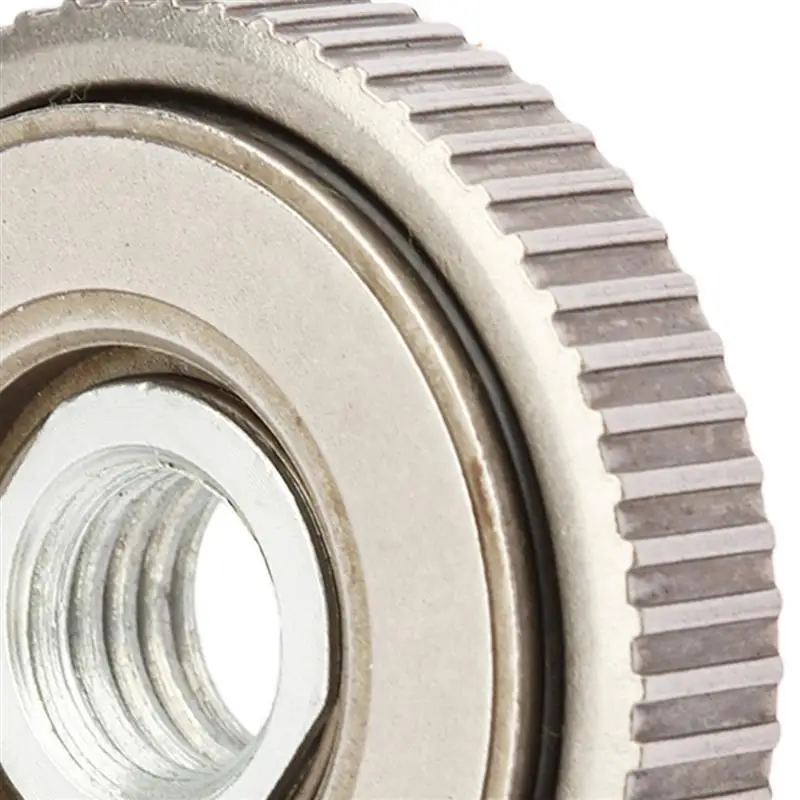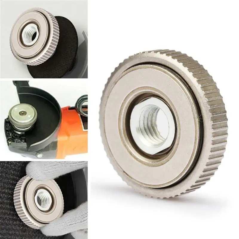 1.[Тонкое мастерство]: матовая поверхность имеет тонкую текстуру, запирающий патрон для угловой шлифовальной машины Увеличивает трение, а БЫСТРОРАЗЪЕМНАЯ гайка может надежно зафиксировать шлифовальный круг и не легко скользить.