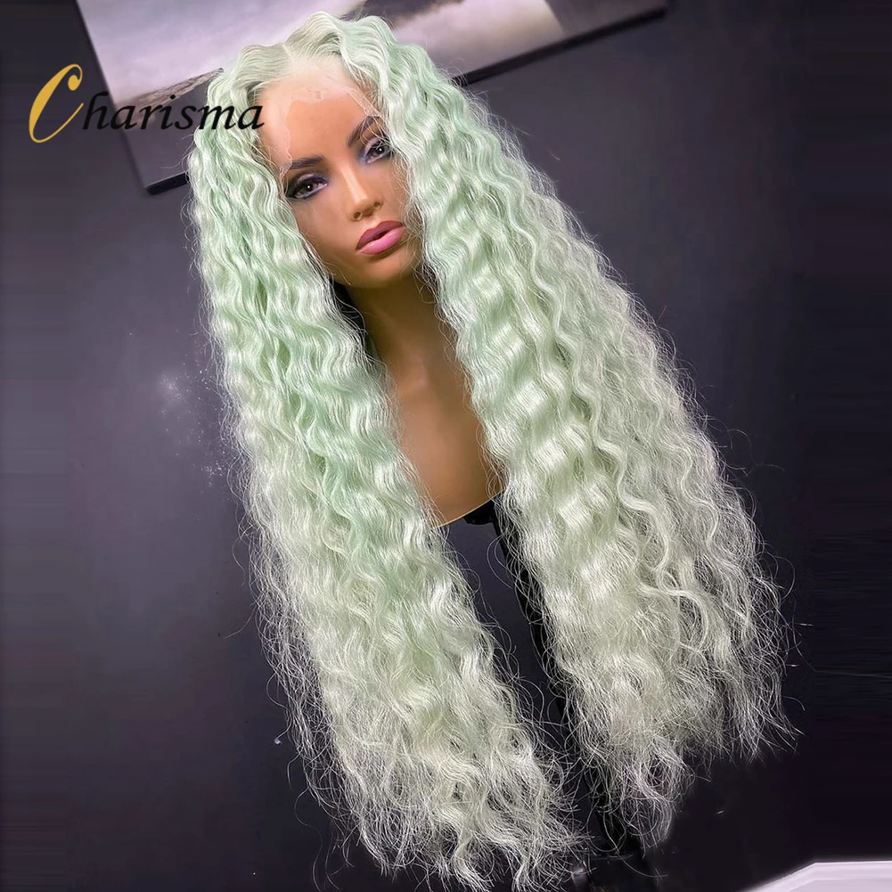 Харизма, длинные волнистые кружевные передние парики зеленого цвета, искусственные кружевные передние парики, натуральные волосы, кружевные передние парики