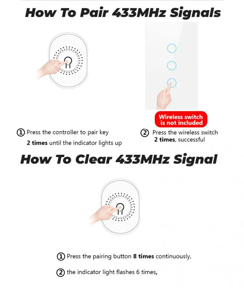 【WIFI 433 】Он может управляться с помощью приложения tuya/smart life, голосового динамика и может управляться беспроводным переключателем (433 МГц) и переключателем управления, что более удобно