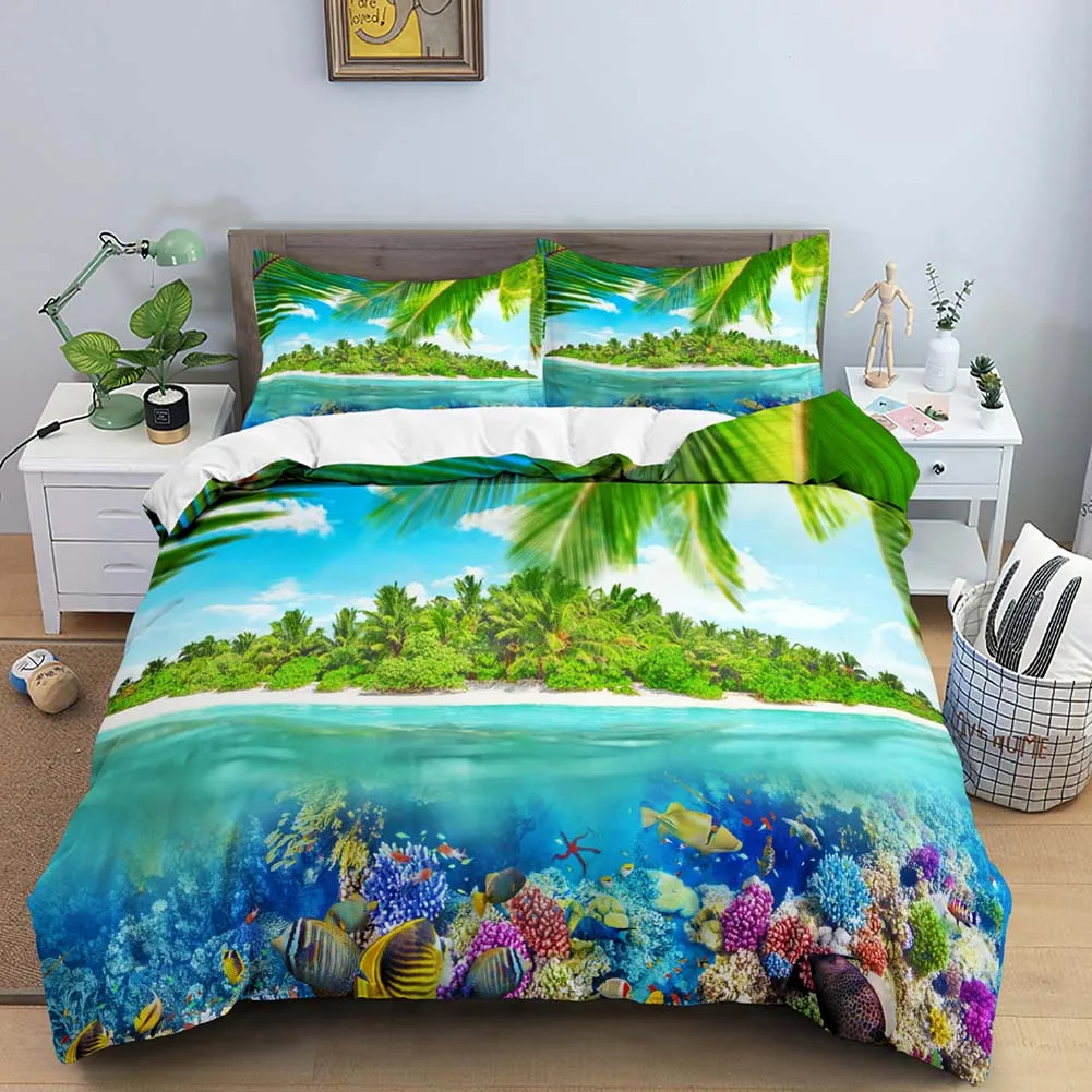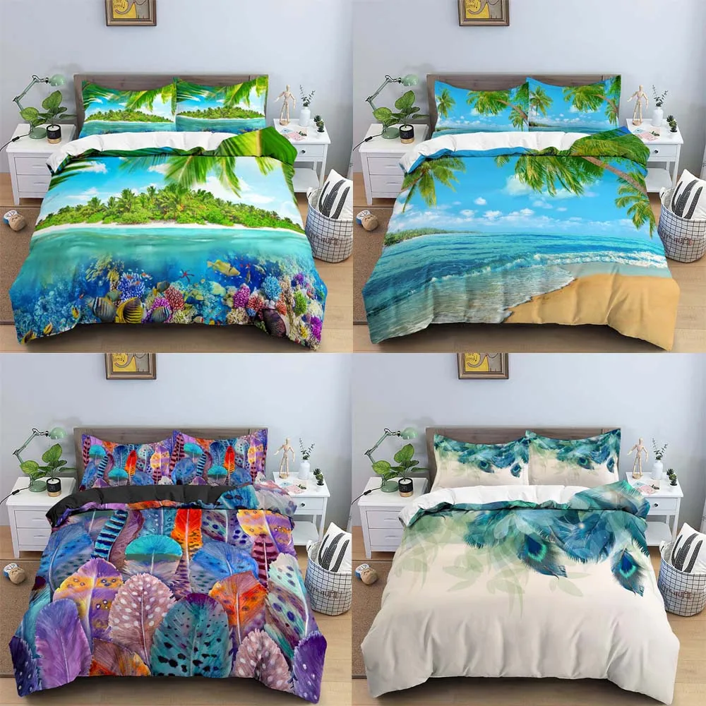 3D пододеяльник с изображением моря, набор постельного белья с перьями, двойной 210x21 0 пододеяльник с застежкой-молнией, пододеяльник размера King