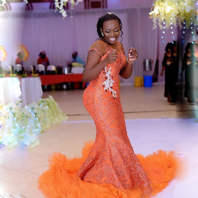 Aso Ebi платье для выпускного вечера, с рукавами-крылышками, жемчужинами и бусинами, в африканском стиле, женское вечернее платье, Прозрачное платье с оборками, платья для вечерние