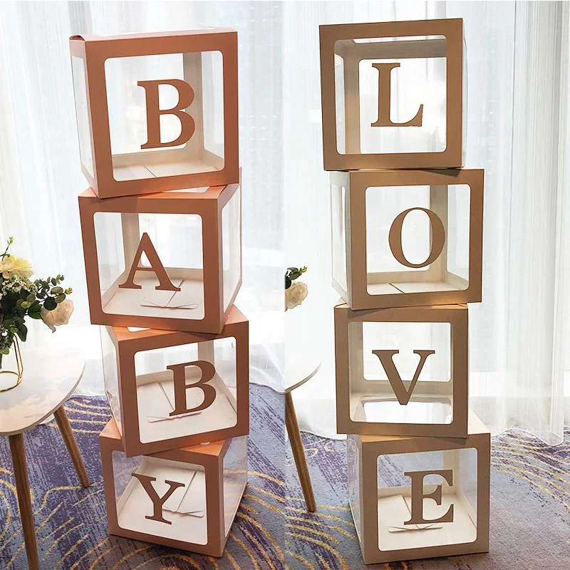 Прозрачная коробка для воздушных шаров с алфавитом и именем для мальчиков и девочек