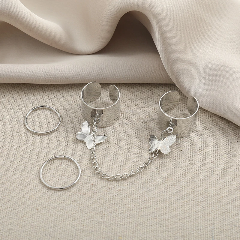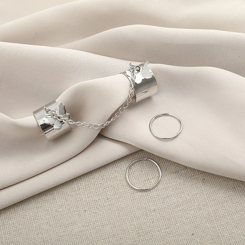 Женское кольцо-цепочка с двумя пальцами, в стиле панк