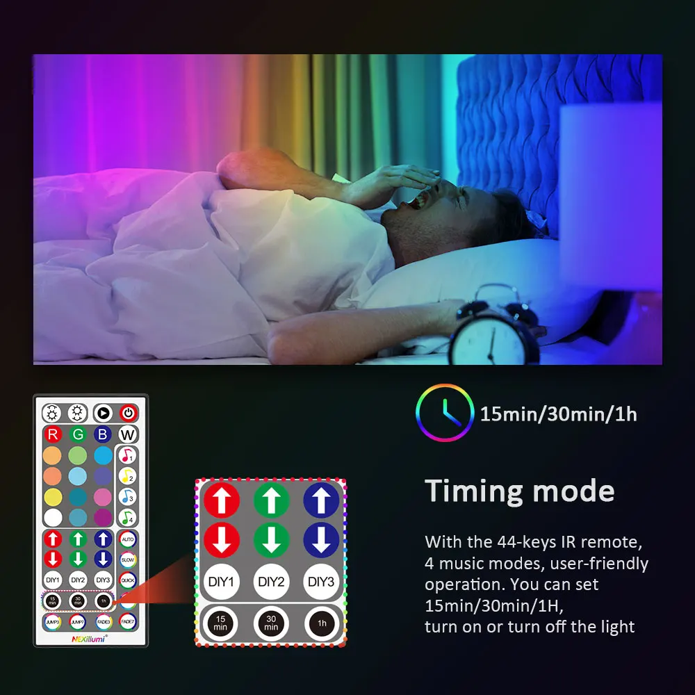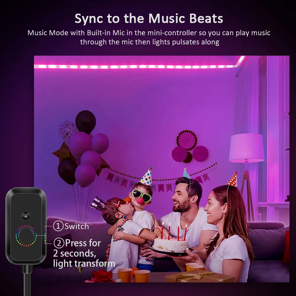 Тип 1:Светодиодная лента с 44 клавишамиГолоса/Музыка синхронизированный и даже не подозревали, контролируется 44-клавишным пультом управления. Нажмите одну кнопку музыкального контроллера в течение двух секунд, чтобы изменить светТип 2:Двойное управление20 клавишный пульт дистанционного управления + Bluetooth Светодиодная лента для музыкиЕсть датчик, который улавливает любые звуки/музыку, и свет будет следовать ритму звука/музыки. Пульт ДУ с 24 кнопками + приложение предлагает тонн удобство для управления светодиодной ленты.