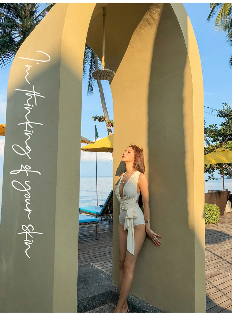 Слитный купальник-бикини с V-образным вырезом, Женский Летний Пляжный комбинезон, сексуальный купальник, новинка 2022