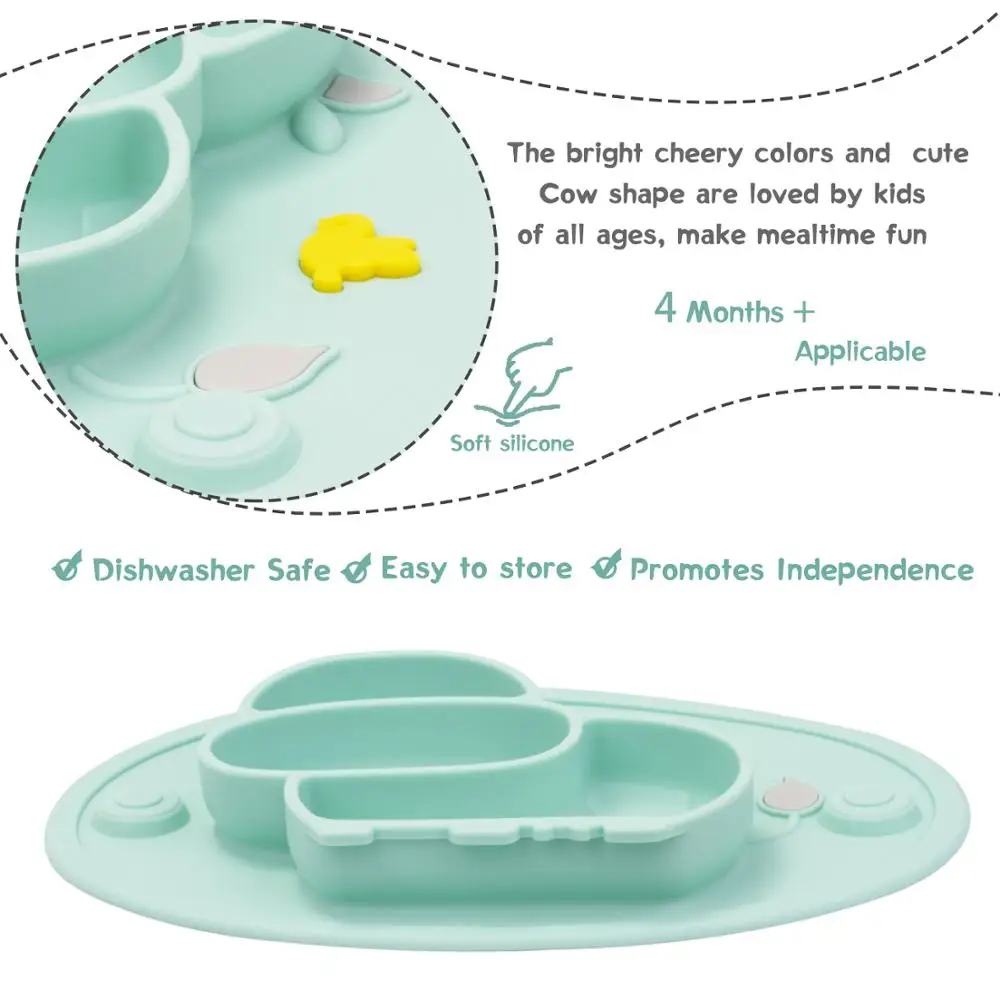 Детская Силиконовая подложка на присоске + тарелки для кормления, разделенный коврик для детей и малышей, подходит для большинства подносов для кормления, можно мыть в посудомоечной машине
