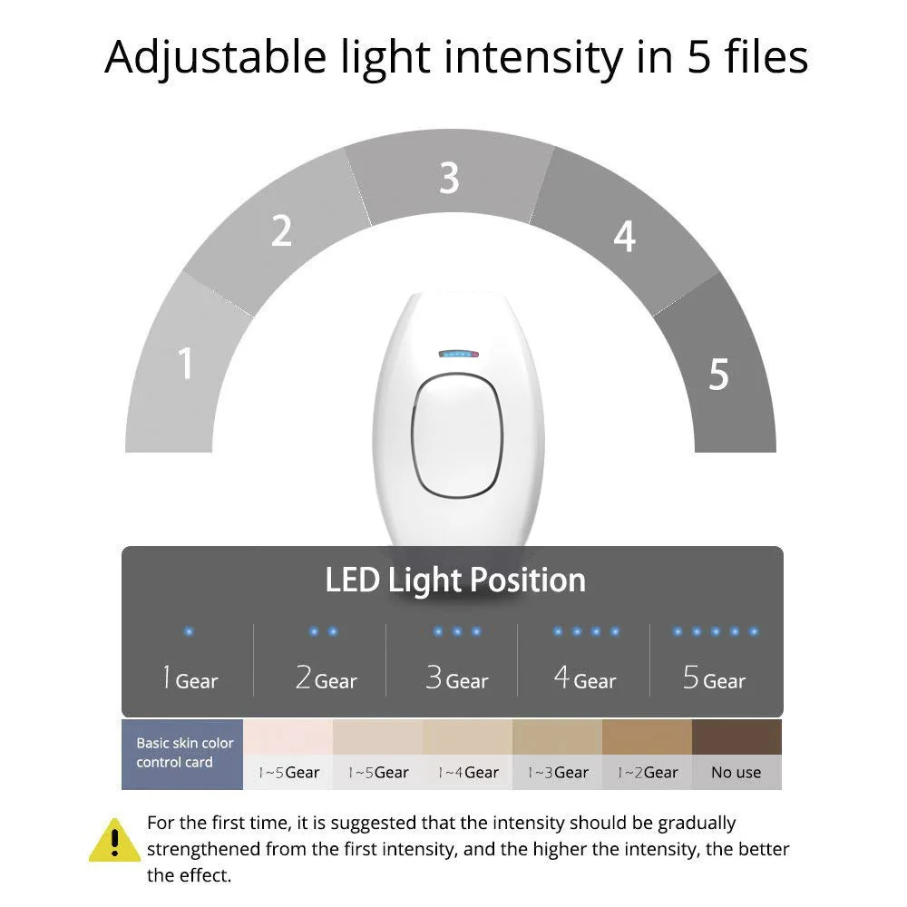 Система удаления волос IPL имеет пять регулируемых настроек энергии на светильник, чтобы обеспечить мягкое, но эффективное лечение. Используйте d правильно, IPL лечение удобно и мягко использовать даже на чувствительной коже и чувствительных областях тела.