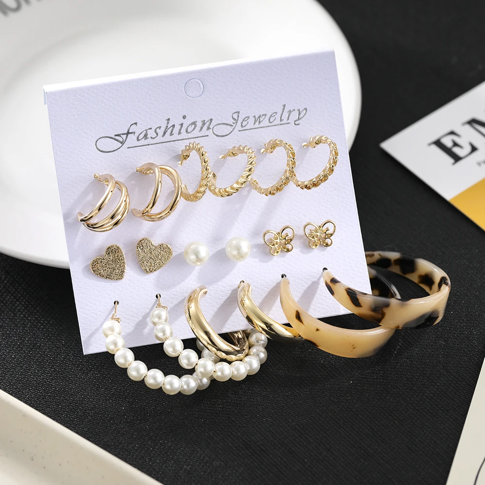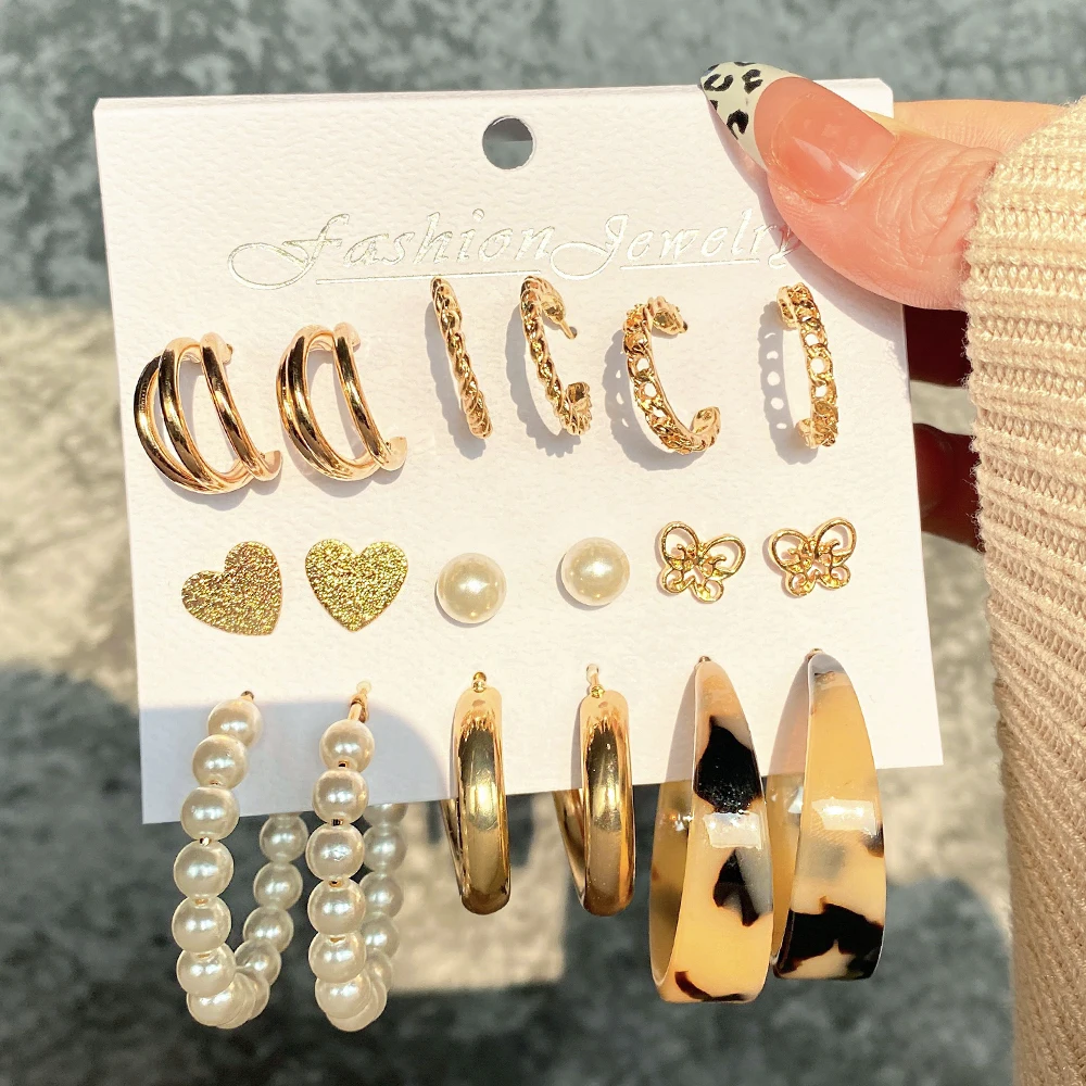 EN богемная Мода 2022 тренд круглый Леопардовый цвет, акриловый серьги-бабочки для женщин сердце жемчужный набор серег-колец для женских ювелирных изделий