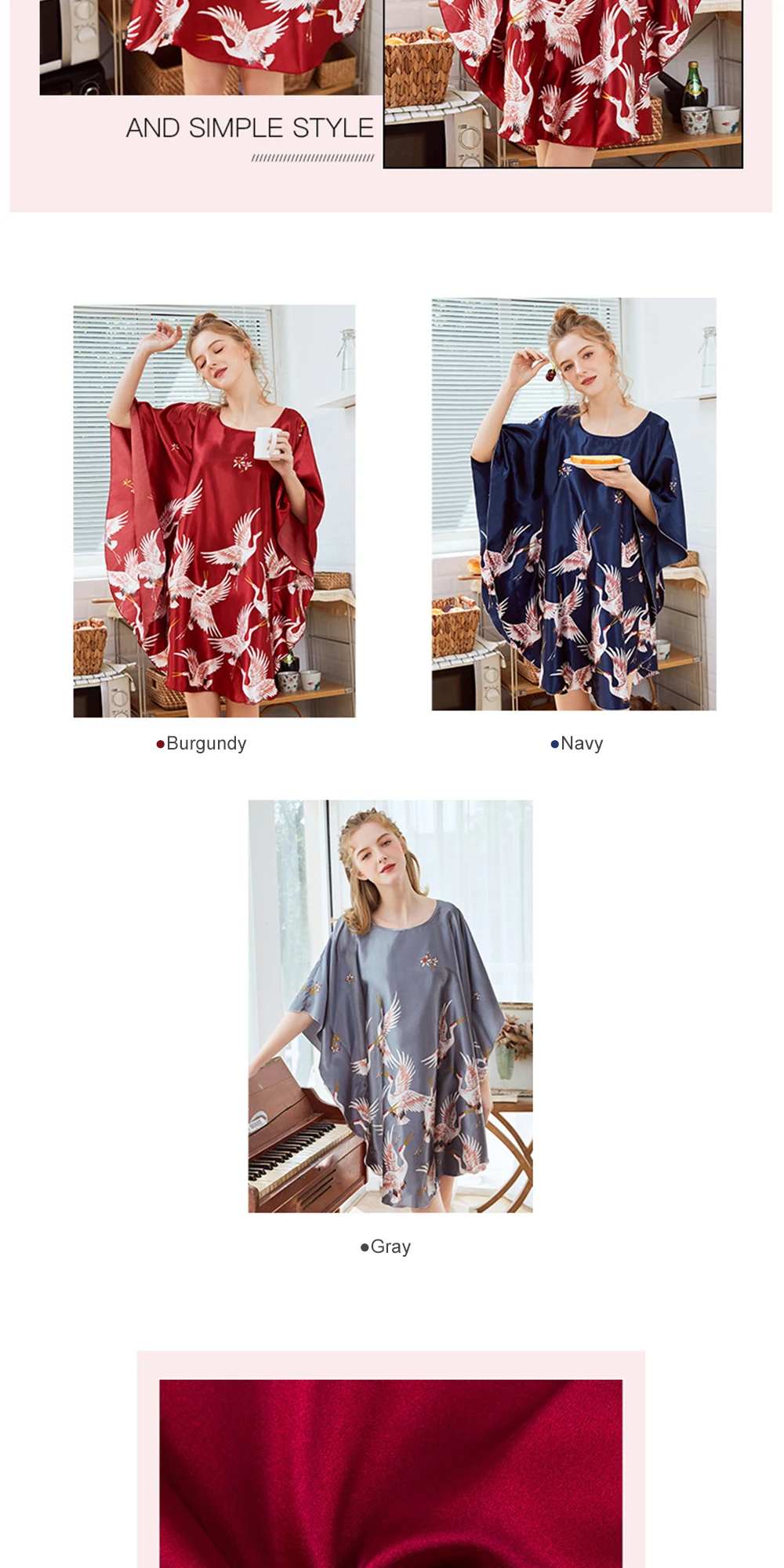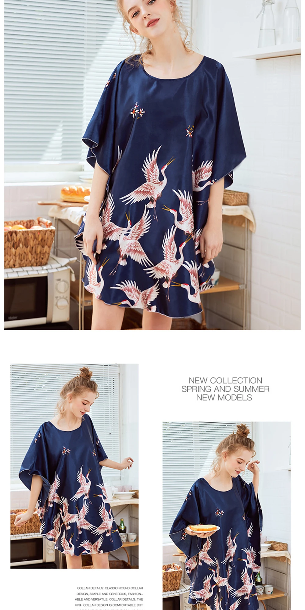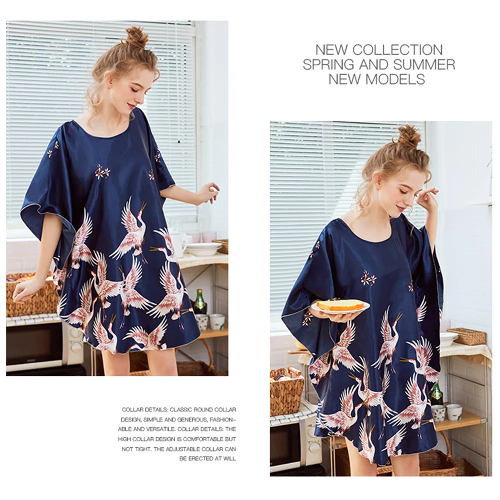 Ночнушка FZSLCYIYI женская с рукавом летучая мышь, шелковая ночная ...