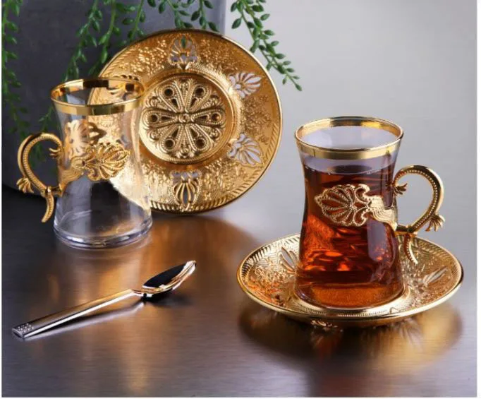 Чудесные турецкие чашки для чая amazing SAFA и набор блюдец с серебристым и золотым цветком чайный набор.