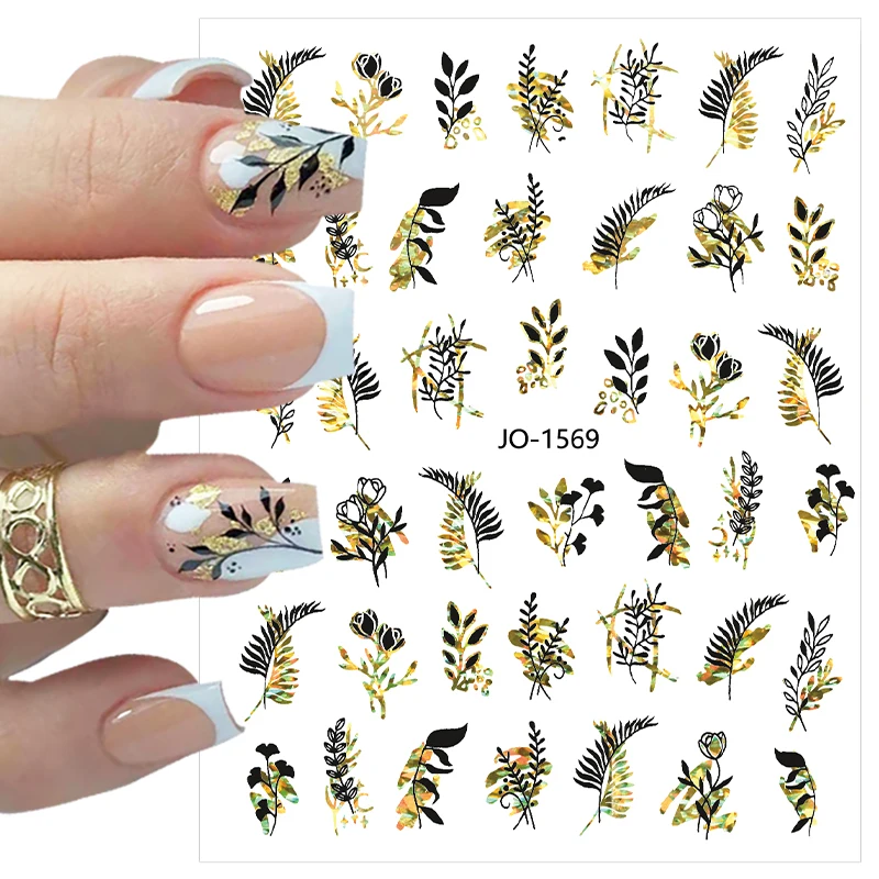 Черная бронзовая Золотая 3D наклейка для дизайна ногтей Бронзовый черный золотой лист узор для лица переводная наклейка аппликация слайдер дизайн ногтей