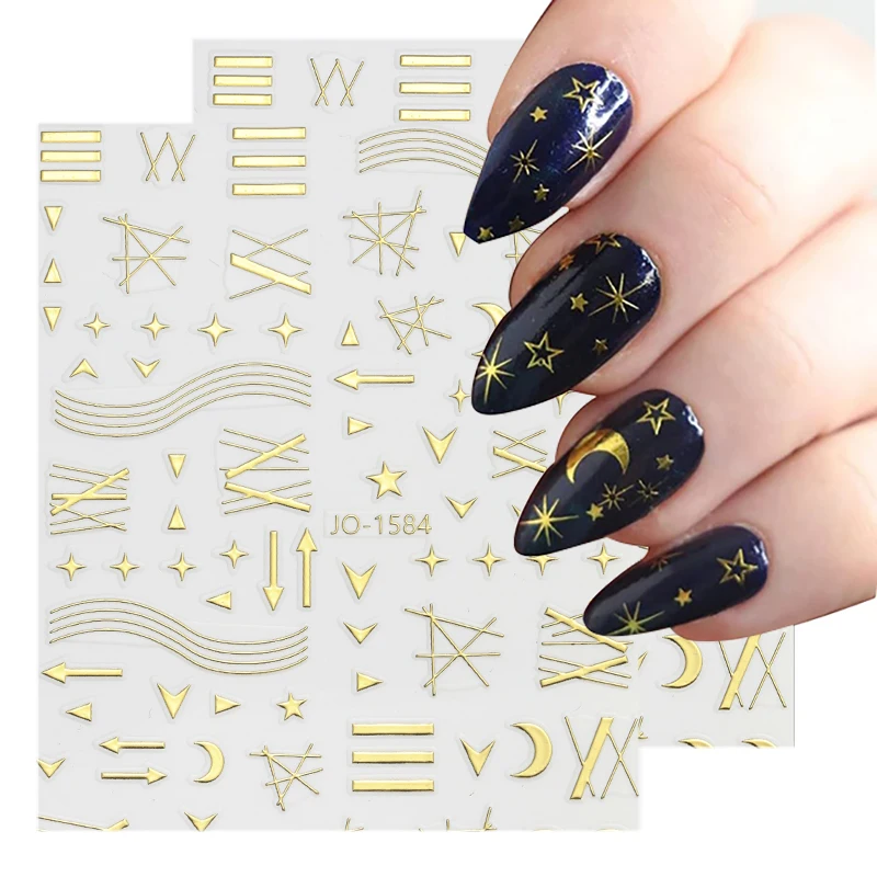 Голографическая 3d-наклейка для ногтей, самоклеящаяся золотистая и ...
